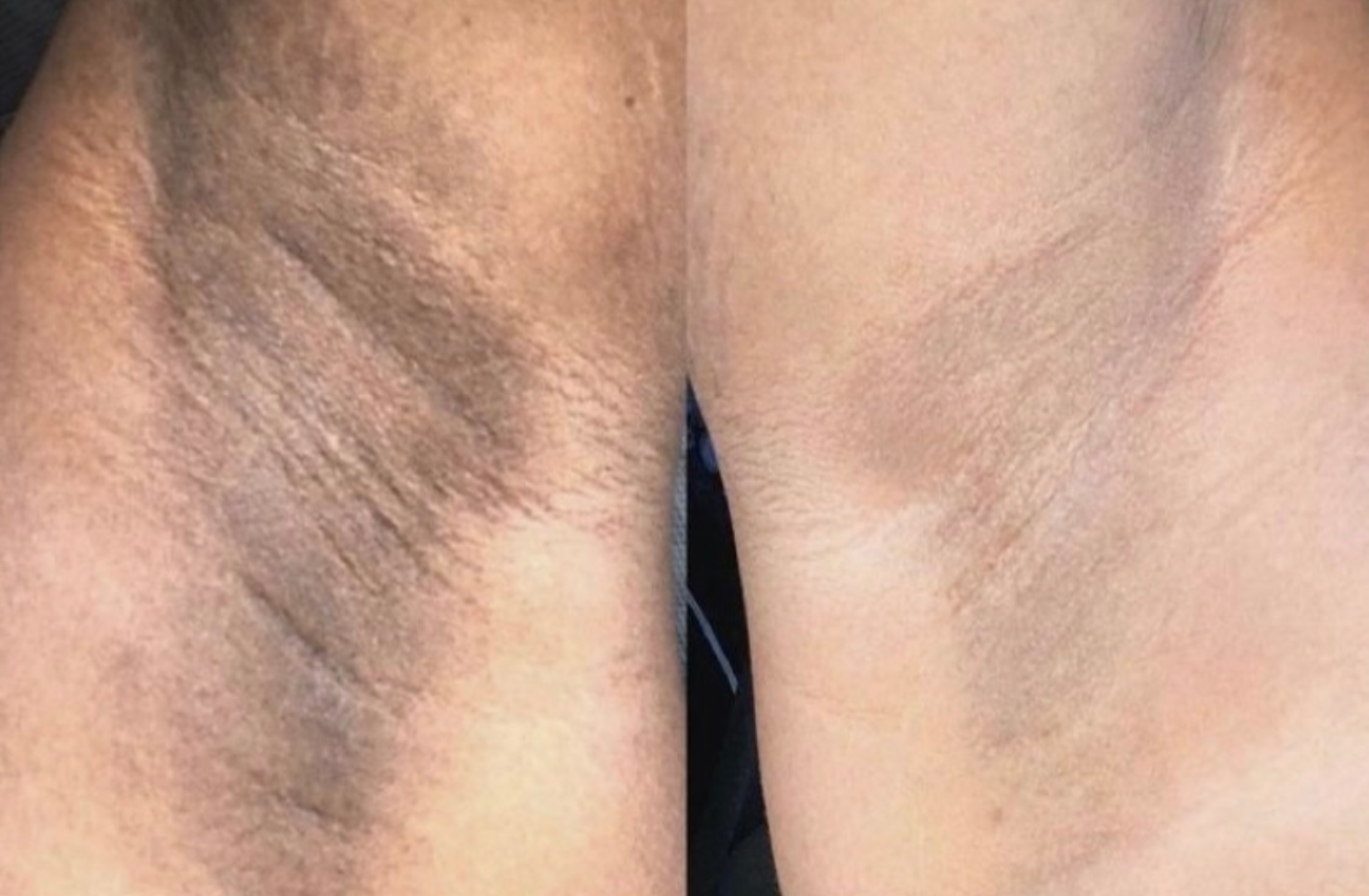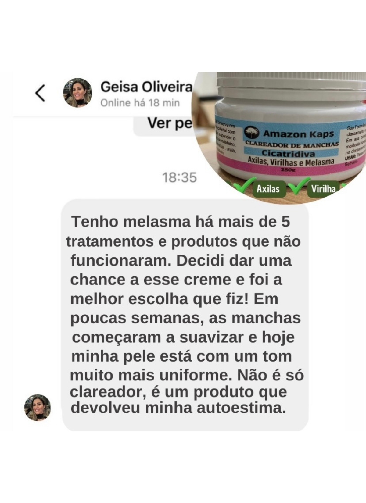 Atua no clareamento de manchas sem agredir e sem irritar a pele.